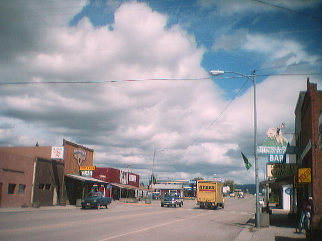 I also got a picture of Scott the safety motorcycle rider out the window of the truck as we were leaving Pit 3, and yet another scenery shot, before we got into camp. We're in Chief Joseph something-or-other Park, a fairly nice site just 5 blocks or so from downtown Harlowton.