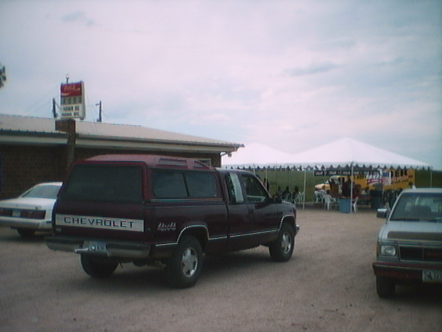 One accident occured on the way to camp -- we passed a lady who'd slipped on the high volume of shoulder junk while avoiding a car in the first few blocks we'd been on the main business street in Sheridan. She was okay, but her arm had chunks of gravel embedded in it. There was another hill up to the camp, but my granny gear made it.