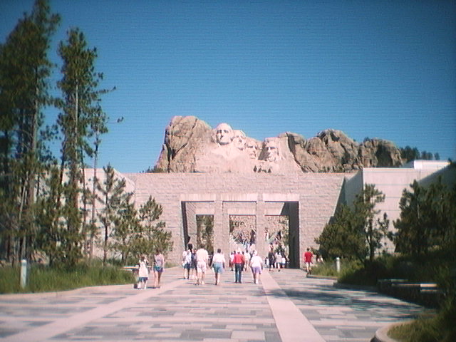 The Crazy Horse Monument project celebrated it's 50th year anniversary this June, at which time work on the face was completed. The entire project will probably not be finished in my lifetime, but we will see. Ro and I plan on going back every 10 years to check on the project. The designs call for more than this amazing 3-dimensional, in-the-round monument; a medical teaching facility, museums, and information on all tribes of North American Indians are just part of what should be an even more amazing place than what it currently is. This statue and embedded tablet show what the mountain will look like someday. The Crazy Horse Mounument project has never used federal or state money, because the sculptor did not think that that would be appropriate. He also did not like the idea of concessions or charging admission, but after his death his wife and some of their 10 children took over the project, and allowed the incorporation of native artwork and donation-oriented fundraising into the public side of the project. The sculptor (who's name I have somewhere) was approached by Henry Standing Bear of the Souix Nation, but the monument is to represent all northern american indian tribes, and, in the words of Standing Bear, to "let the white man know that the red man had heros too".
