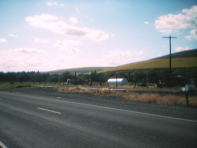 The road still climbed a bit, into Touchet, a really cool little town. I got a squeaky red plastic frog there to stick in my handlebar back and started a run on them after walking around for several minutes squeaking it at people. heh heh. It was a really cool Texaco station/ general store (everything from gardening tools to food), which as one local told me, had been originally built on the other side of the road but had been burned down in the early 1900s (I think I remember that right). It certainly seemed to be a local meeting and hanging-out place.