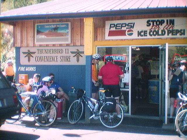 This day was quite a contrast -- after leaving Lewiston and entering Clearwater Canyon, the decrease in noise and overall visible human impact was amazing. Pit 1 was at this random spot off SR 12, full of bikers enjoying the sunshine -- and putting on more sunblock! We left, with about 30 miles between us and pit 2, so we stopped at what turned out to be a smoke shop on the Nez Perce reservation which, ironic or not that we were there, did sell us lots of non-meltable food and cold drinks!